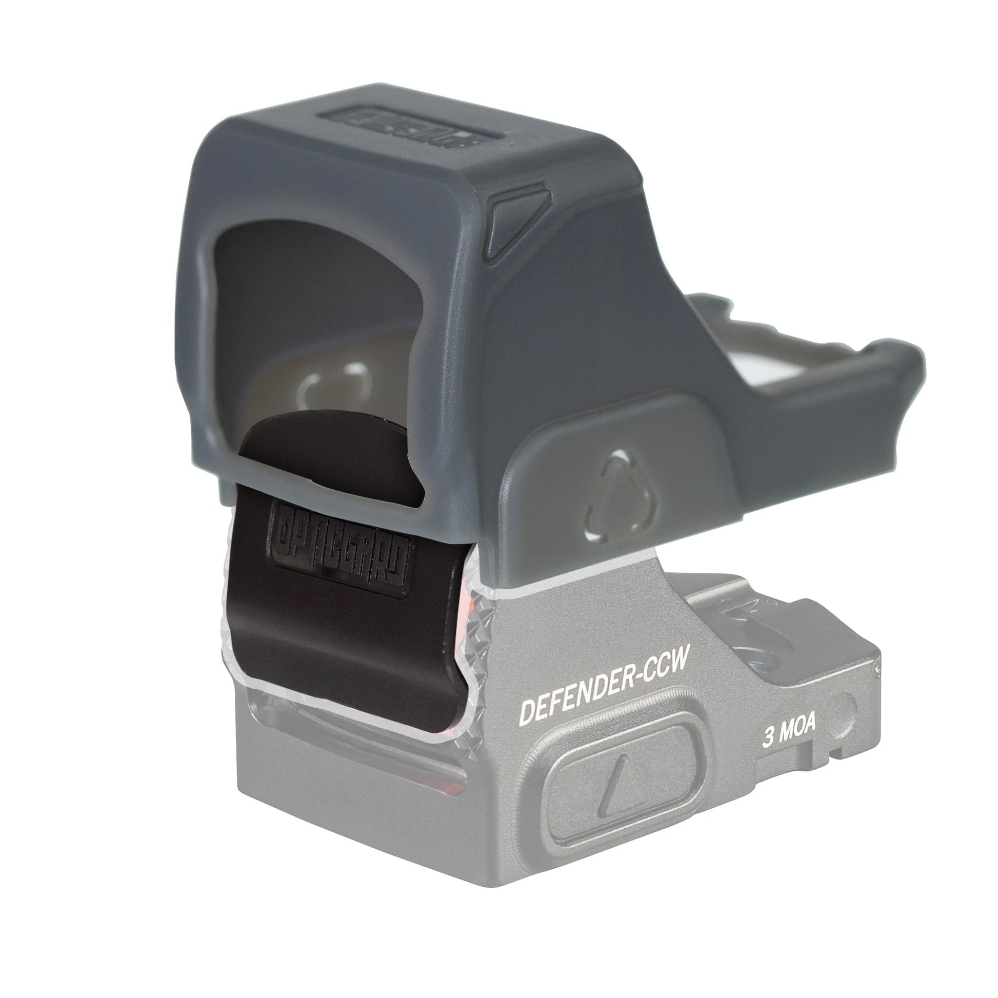 - OpticGard Covers may not be compatible with backup sights that are mounted in front of the optic. Sufficient space is needed for the cover to latch onto the front of the optic housing.